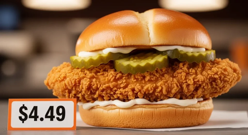 It features a perfectly crispy and juicy chicken breast marinated in authentic Louisiana seasonings, topped with spicy mayo and crisp pickles, and enclosed between a buttery Brioche Bun.Â